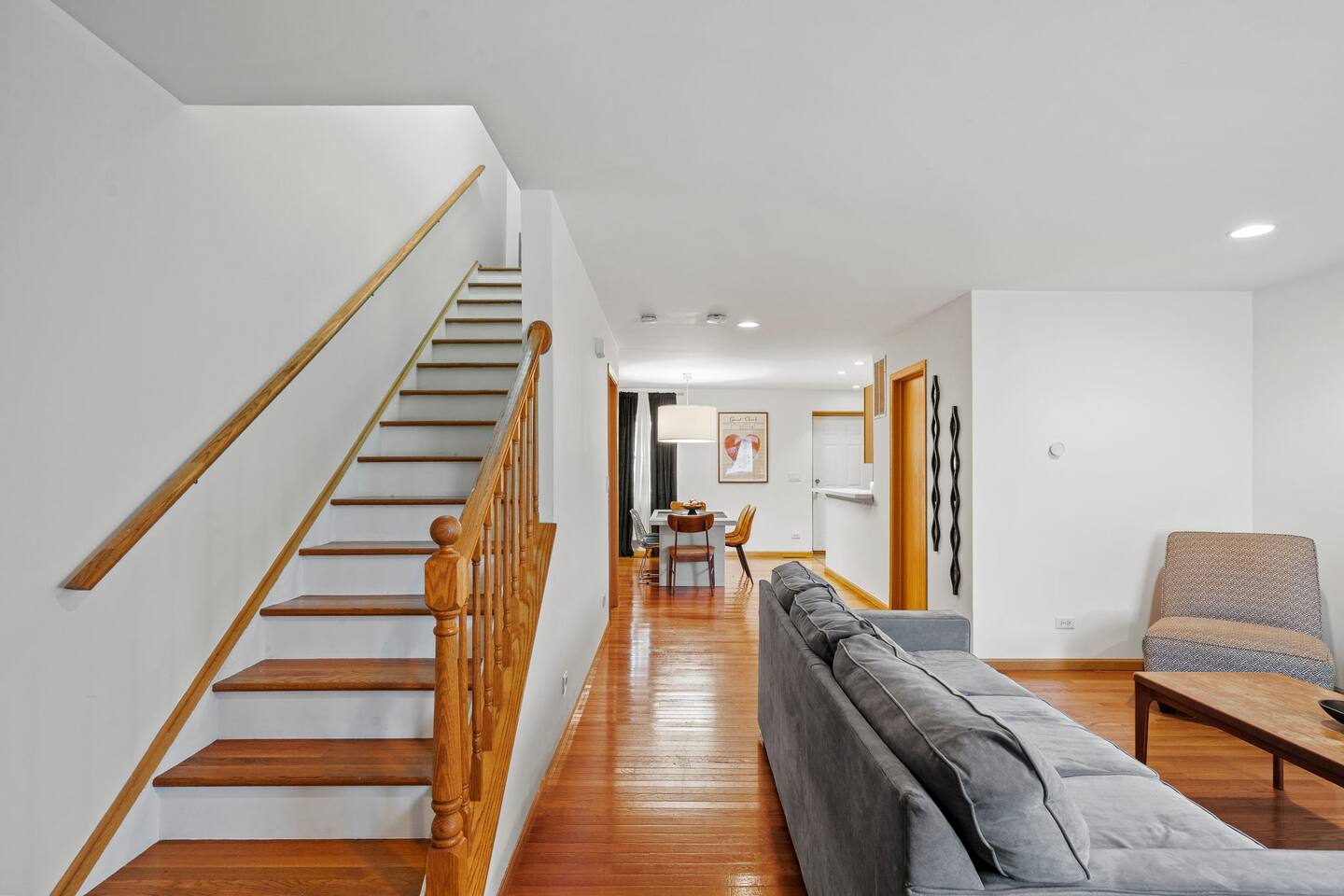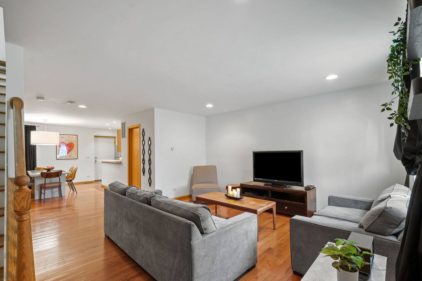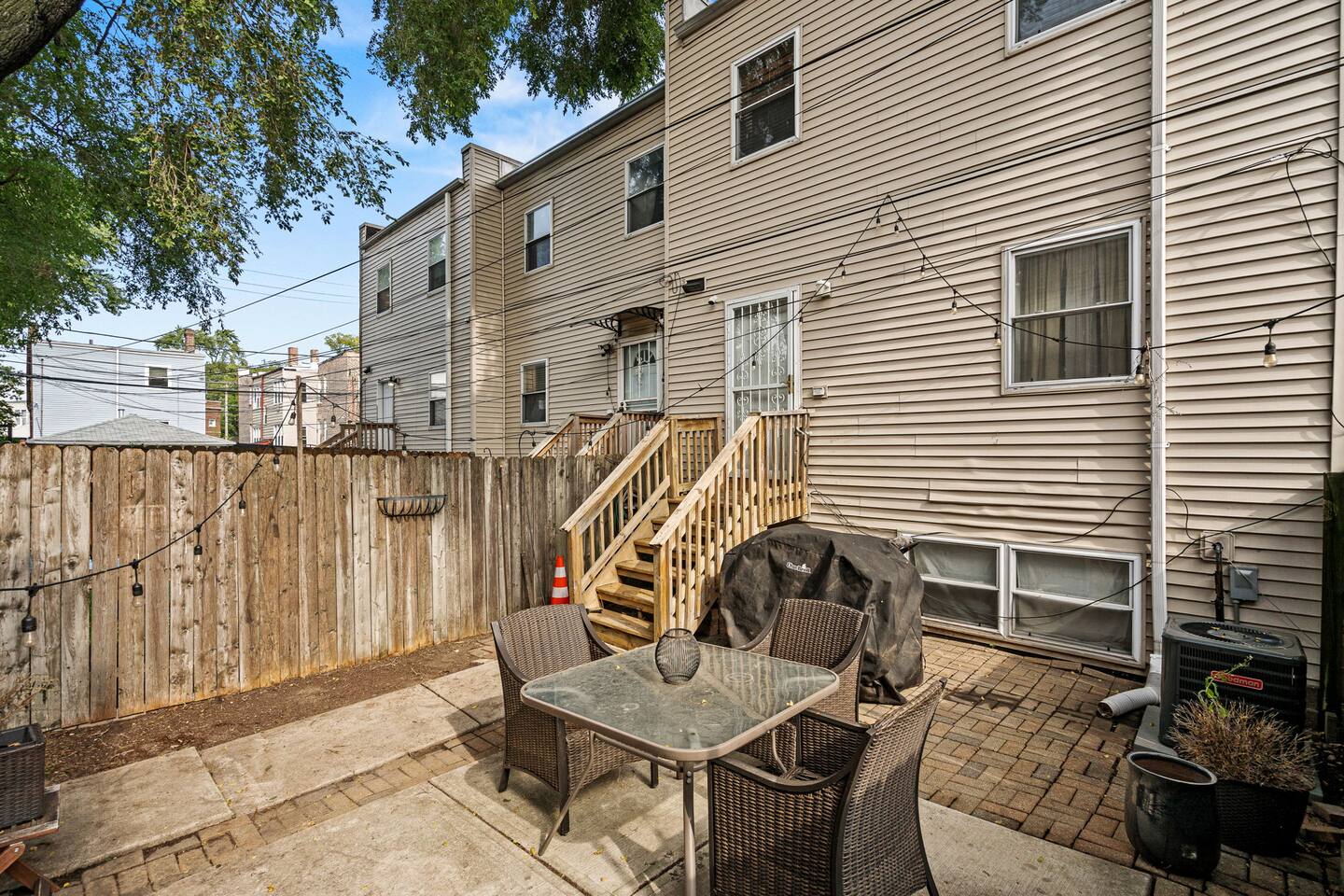 Private property, with a fully fenced backyard perfect for entertaining. Inside, you will find a 3 level home, the main floor is an open concept living style. Large spacious living room flows to the large dining area. You will find a fully equipped kitchen, many amenities to enjoy and a powder bathroom. The basement has a full sized bed, futon, workspace, SMART TV and games to enjoy. All the way upstairs you will find 3 large private bedrooms, full bathroom with a tub, and comfy beds! Can't wait to host you for your trip to Chicago :)